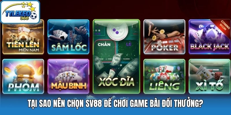 Sv88 luôn tự hào bởi sở hữu kho game đồ sộ và đẳng cấp. Nơi bạn được trải nghiệm cá cược thể thao, bắn cá online, nổ hũ đổi thưởng, đá gà…mọi lúc mà không gặp rào cản nào. Theo đó, sản phẩm giải trí làm mưa làm gió qua nhiều năm mà chưa bao giờ giảm nhiệt là “Game bài”.